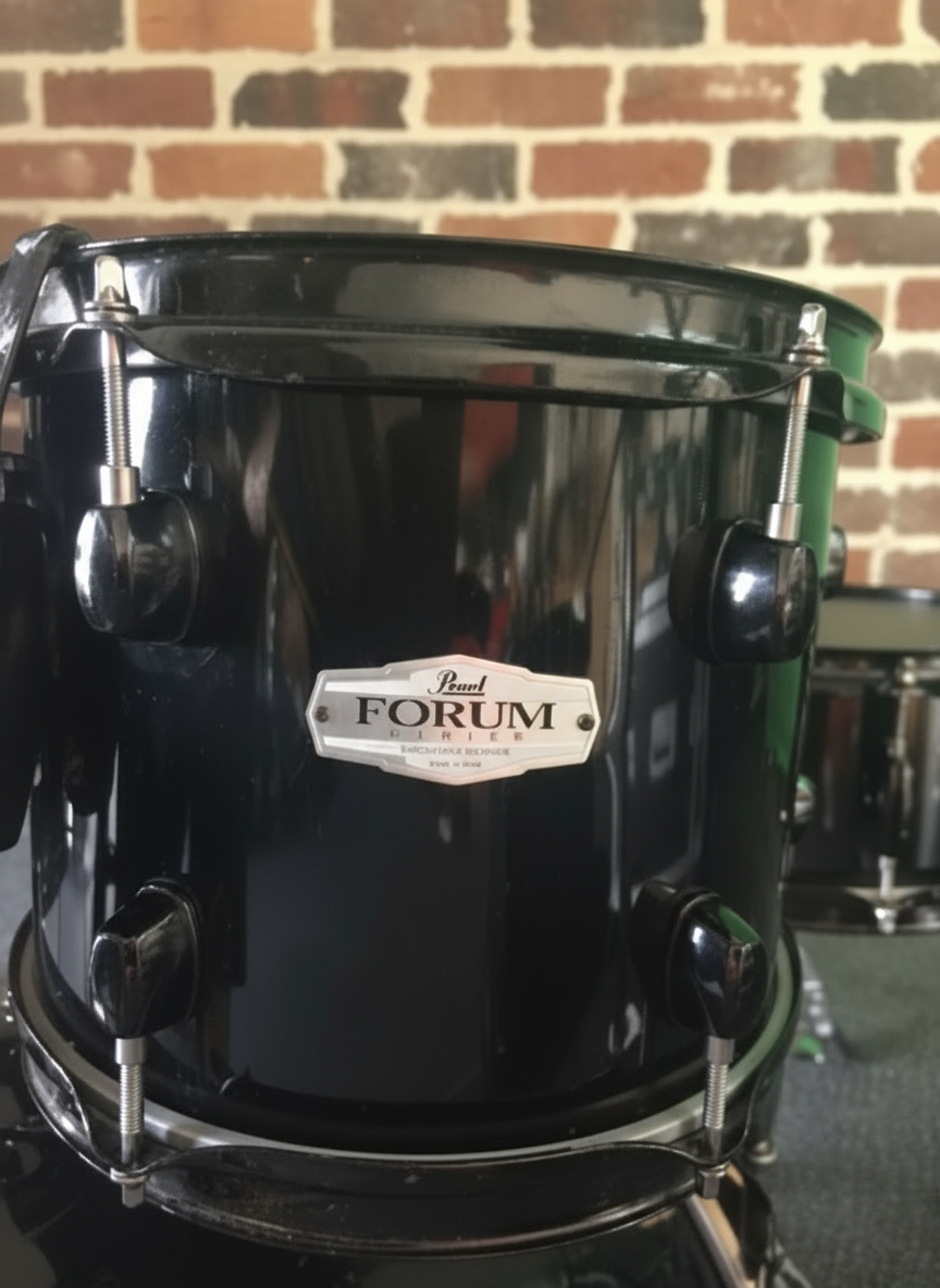 ✅ Original Pearl Forum shells in excellent condition, featuring black-out lugs, rims, and tom holders for a sleek, modern look.